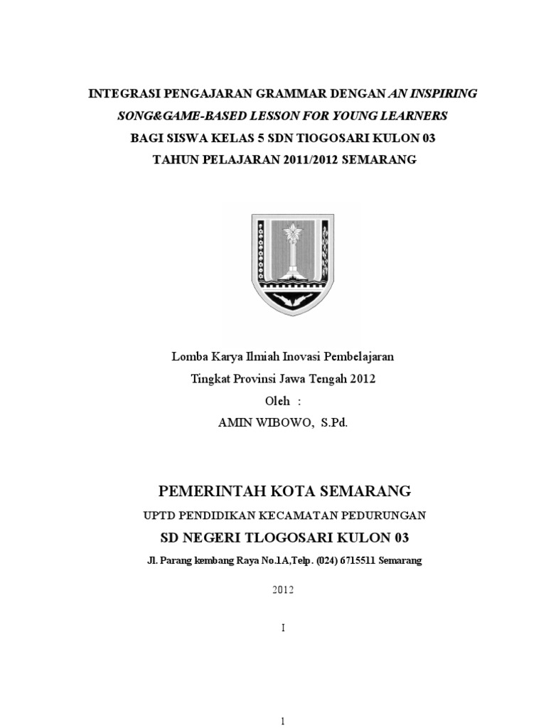 Lomba Karya Ilmiah Inovasi Pembelajaran Tk Provinsi Jateng 2012 2012 By Amin